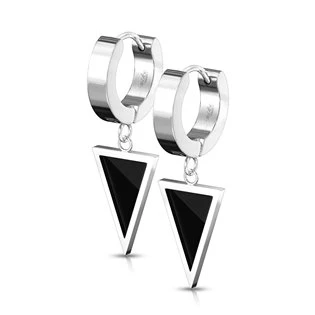 Ocelové náušnice kroužky dekorované zavěšenými trojúhelníky Náušnice jsou vyrobeny z chirurgické oceli s jakostním označením 316L Parametry materiál chirurgická ocel povrchová úprava lesklá typ uzávěru kroužek, visací rozměr přívěšků 10 x 15 mm výška náušnic 32 mm