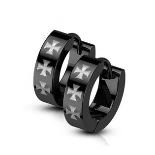 Ocelové náušnice kroužky dekorovné motivem maltézský kříž