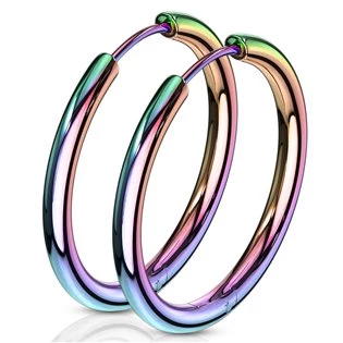 Duhové ocelové náušnice - kruhy 25 mm