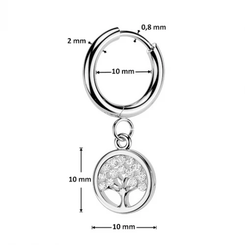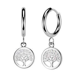 Visací ocelové náušnice strom života dekorovaný kubickými zirkony