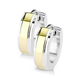 Ocelové náušnice kroužky Náušnice jsou vyrobené z chirurgické oceli 316L a jsou zdobné povrchovou úpravou v barvě žlutého zlata Parametry materiál chirurgická ocel povrchová úprava lesklá, žluté zlato průměr náušnic 13mm šíře náušnic 4mm