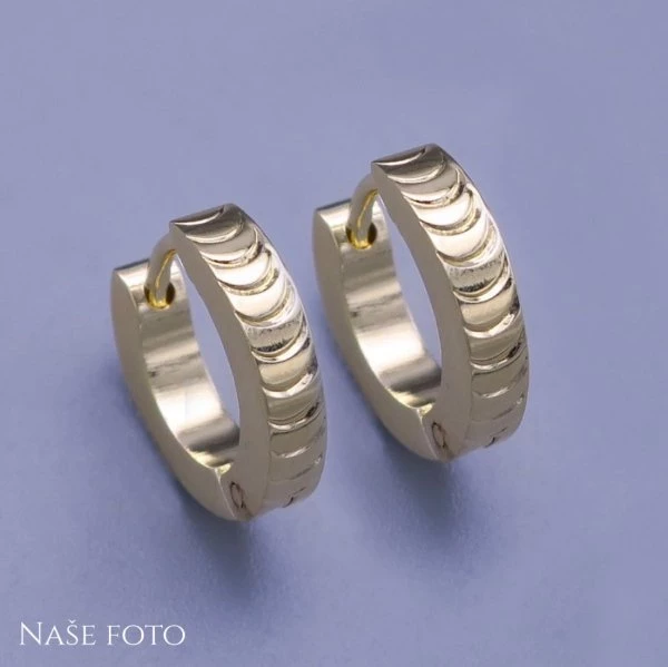 Elegantní dámské kroužkové náušnice s jemným vzorováním z pozlacené chirurgické oceli