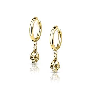 Ocelové náušnice kroužky dekorované zavěšenými lebkami
