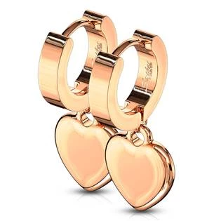 Zlacené ocelové náušnice kruhy s visacími srdíčky