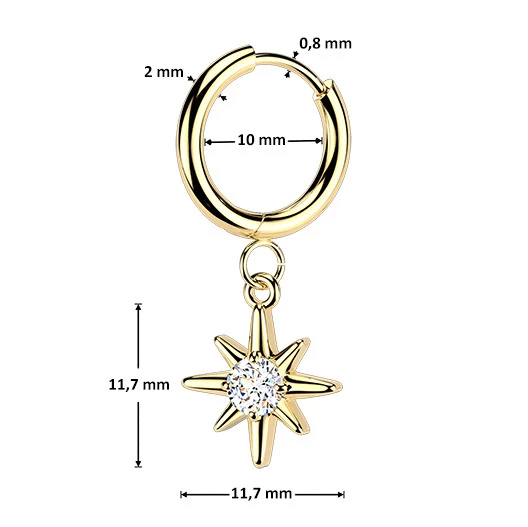 Visací ocelové náušnice hvězdičky dekorované kubickými zirkony