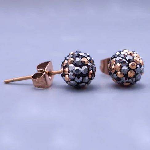 Náušnice z chirurgické oceli kuličky, jsou osázené zirkony v barvách gold rose a silver night.