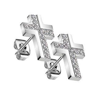 Ocelové puzetové náušnice ve tvaru křížků dekorovaných čirými zirkony