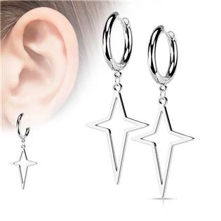Ocelové náušnice kroužky dekorované zavěšenými křížky se zirkony
