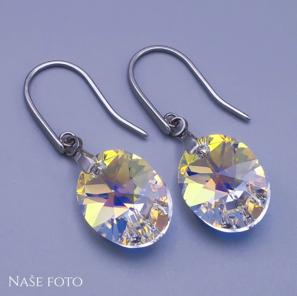 Krásné výrazné náušnice Swarosvki oválky o velikosti 18x 14mm v barvě Crystal AB ( měnící ).