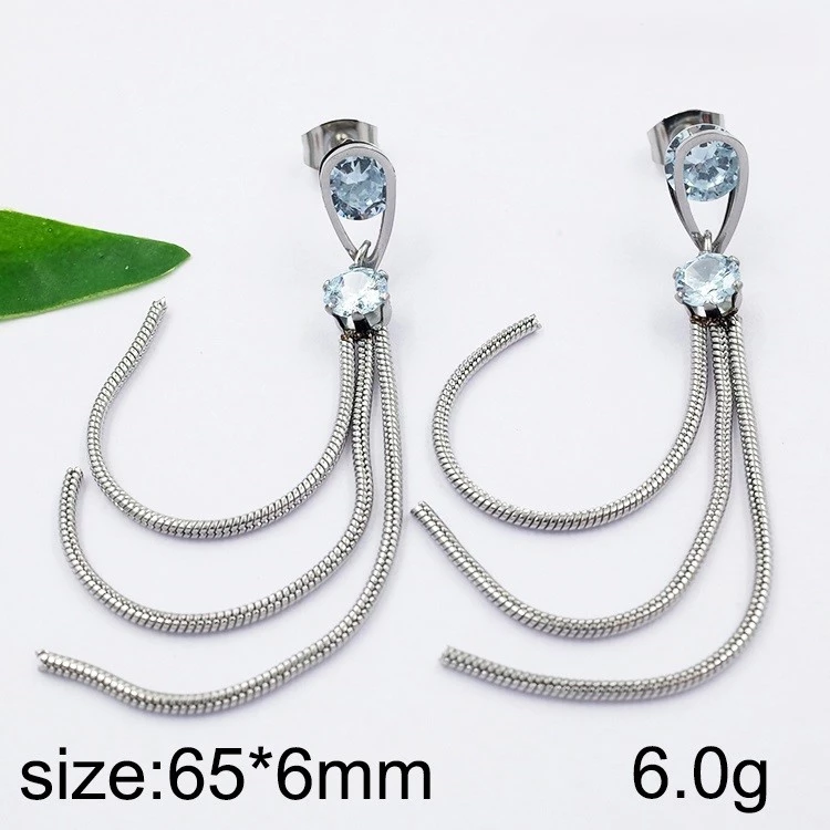 Náušnice visací Chirurgická Ocel stříbrné . Jsou zdobené bílými zirkony. délka 6,5cm. Šperk Chirurgická ocel.Cenově dostupný. Oblíbený pro svoje vlastnosti. Odolnost proti korozi. Barevná stálost.Vyjímečná tvrdost.Plnohodnotně nahradí drahé kovy.