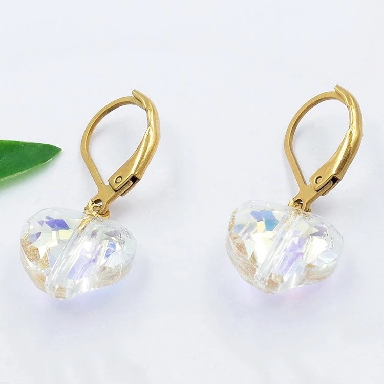 Náušnice chirugická ocel zlatá délka včetně zapínání 2,5 cm, šířka 1 cm. Duhový kámen ve tvaru srdce.