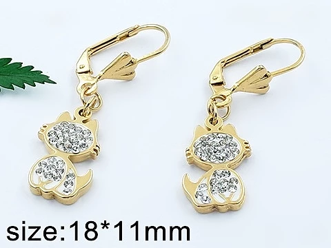 Náušnice z chirurgické oceli ve zlatém provedení oceli. Náunšice visací s přívěskem kočičky s crystal kamínky.