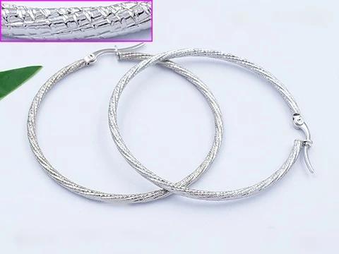 Náušnice z chirurgické oceli Kruhy ve stříbrném provedení. Průměr kruhu 5 cm. Efektní splétané Ocelové Náušnice s vysokým leskem.