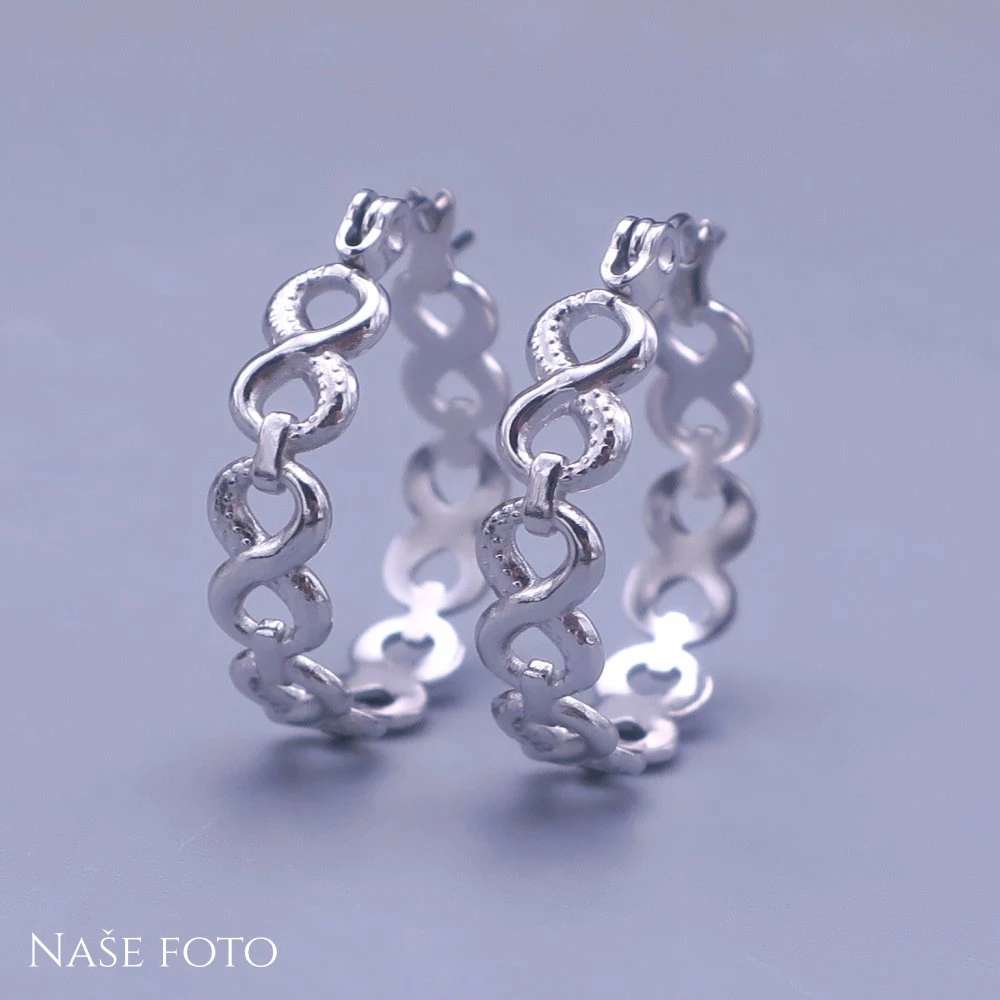 Náušnice z leštěné chirurgické oceli kruhy s motivy infinity ( nekonečno ).