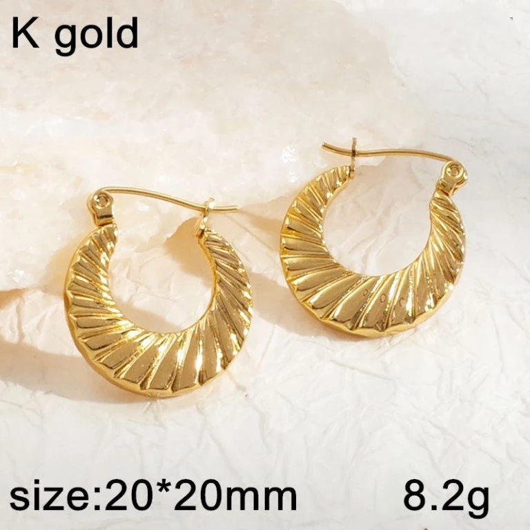 Krásné odlehčené náušnice, kruhy z chirurgické oceli zlacené oboustraně zdobené gravírem . Průměr náušnice 2cm. Ocelové Antyalergenní Náušnice. Cenově dostupný šperk . Oblíbený pro svoje vlastnosti. Odolnost proti korozi. Barevná stálost. Vyjímečná tvrdost . Plnohodnotně nahradí drahé kovy