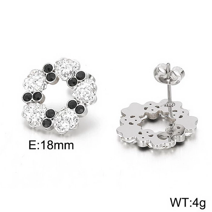 Náušnice z chirurgické oceli klasické, stříbrné bohatě zdobené Českými krystal a černými skleněnými kamínky. Průměr naušnic je 1,8cm. Šperk Chirurgická ocel.Cenově dostupný. Oblíbený pro svoje vlastnosti. Odolnost proti korozi. Barevná stálost.Vyjímečná tvrdost.Plnohodnotně nahradí drahé kovy.