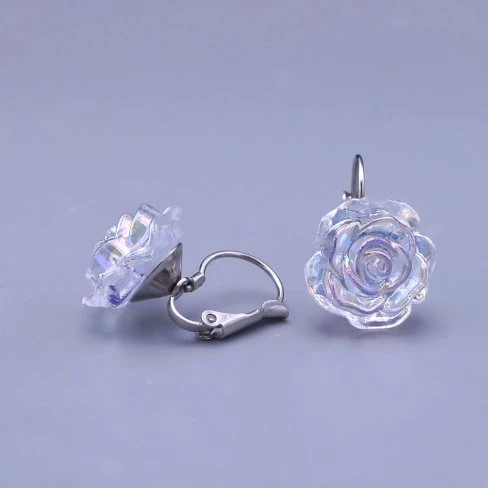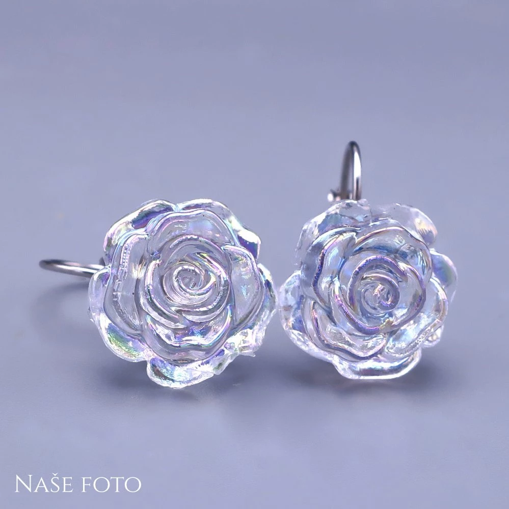 Náušnice z chirurgické oceli s perleťovou kytičkou.