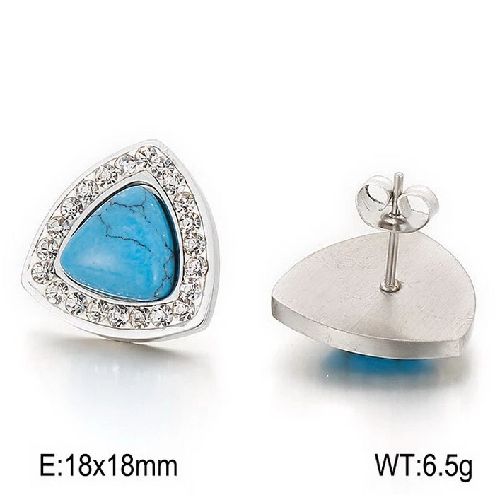 Náušnice z chirurgické oceli klasické, stříbrné s větším modrým tyrkysem a malými krystal kamínky po obvodu. Velikost 1,8x 1,8cm. Šperk Chirurgická ocel.Cenově dostupný. Oblíbený pro svoje vlastnosti. Odolnost proti korozi. Barevná stálost.Vyjímečná tvrdost.Plnohodnotně nahradí drahé kovy.