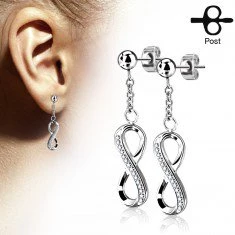 Náušnice z chirurgické oceli, lesklý symbol nekonečna zdobený zirkony