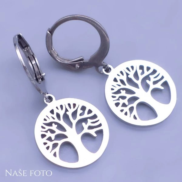 Náušnice z leštěné chirurgické oceli jsou zdobené symbolem strom života o velikosti 13mm. Pohodlné zapínání na klapku. Celková délka náušnice se zapínáním 27mm. 2188