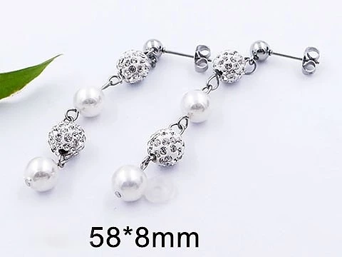 Náušnice z chirurgické oceli visací s přívěsky kuliček bílá perlička a štrasové kuličky v krystal barvě. BARVA KAMENE Crystal ROZMĚR 5,8 x 0,8 cm