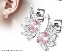 Ocelové náušnice jsou vyhotoveny v podobě třpytivého andělského křídla, které zdobí jeden větší kulatý zirkon v barvě růžové a čtyři menší zrnkovité zirkonky. Náušnice se zapínají na kolík a brzdítko. Rozměry náušnic: 9 x 15 mm