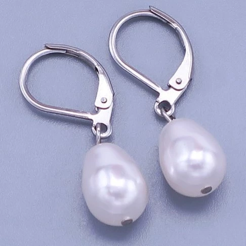 Perle Swarovski elements o velikosti 11x8mm jsou zavěšeny na zapínání z chirurgické oceli na klapku. Barva bílá perleť. Celková délka náušnic z chirurgické oceli se zapínáním 25mm. 077