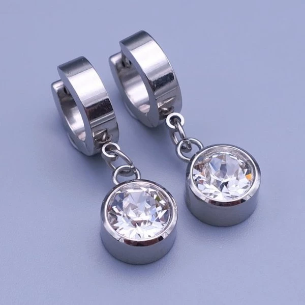 Náušnice z chirurgické oceli kroužky o průměru 13mm a šířce 4mm zdobí krystal Swarovski o velikosti 8mm. Barva Crystal ( čirá ) Celková délka náušnic se zapínáním 28mm. Chirurgická ocel je vhodná pro alergiky na běžné kovy. 1306