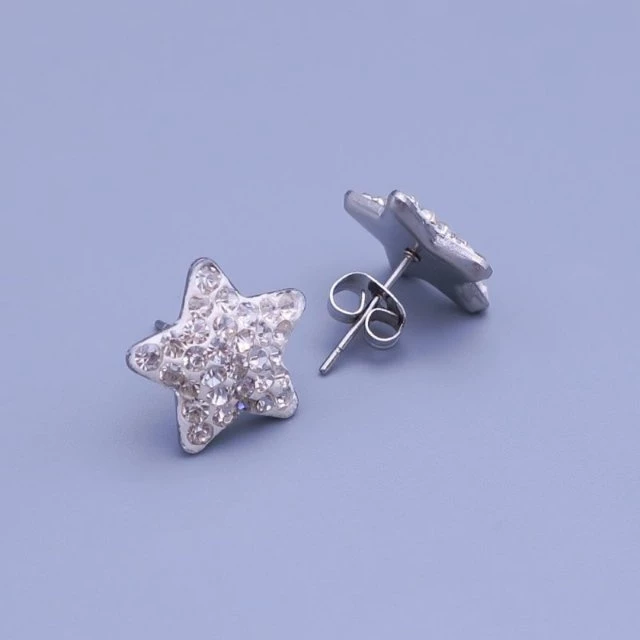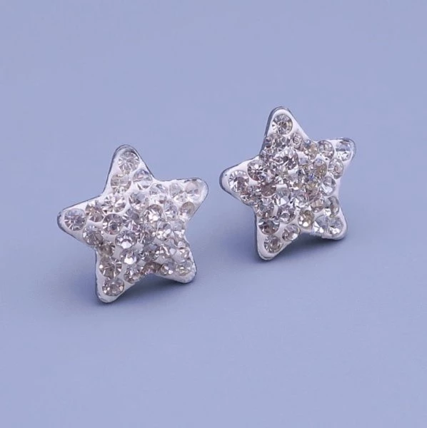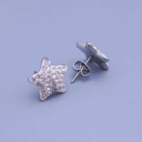 Náušnice z chirurgické oceli hvězdičky jsou zdobené čirými zirkony. Velikost 14mm Zapínání na puzetu. 284