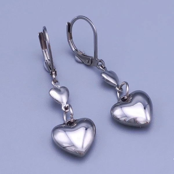 Náušnice oboustranná srdíčka z leštěné chirurgické oceli. Srdíčka 10mm jsou zavěšena na pohodlném klapkovém zapínání z chirurgické oceli zdobeném malým srdíčkem 5mm. Celková délka náušnic se zapínáním 34mm. Náušnice jsou vhodné také pro děti od 6 let. Chirurgická ocel je vhodná pro alergiky na běžné kovy. 449