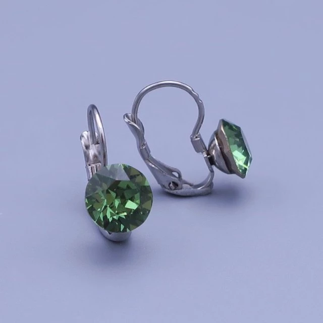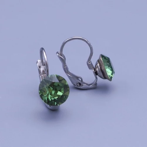 Krystal Swarovski s výrazným brusem v barvě erinite ( světlá zelená ) o velikosti 8mm je uchycen na pohodlném zapínání z chirurgické oceli na klapku. Celková délka náušnic se zapínánm 17mm. Náušnice jsou vhodné také pro děti od 4 let. Chirurgická ocel je vhodná pro alergiky na běžné kovy. 431
