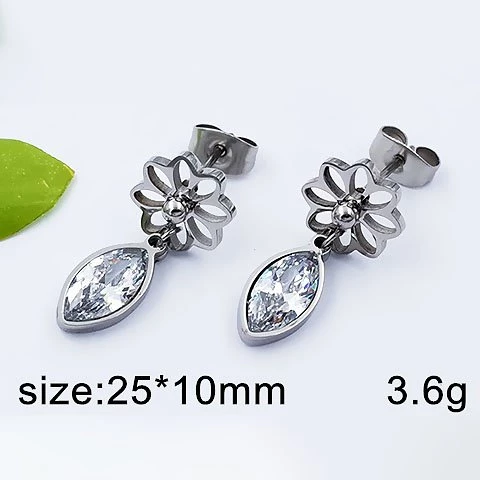 Jemné náušnice zdobené zirkonem nejvyšší kvality Zapínání na puzetku Rozměry 25x10mm Hmotnost 3,6g 3NE39634