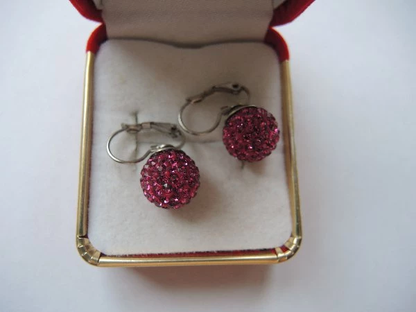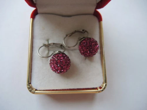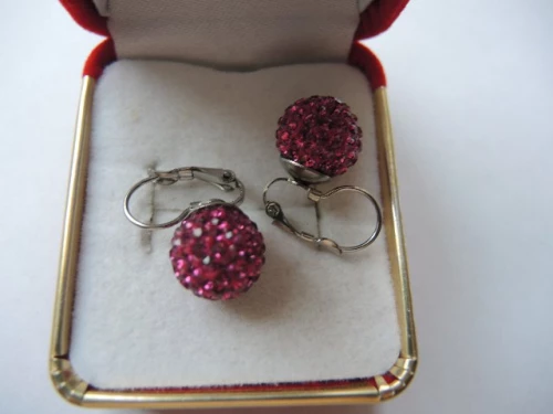 Luxusní náušničky kuličky jsou osypané zirkony v barvě Fuchsia ( zářivá růžovo červená) Velikost kuliček 12mm Při jejich výrobě je kladen důraz na dokonalé usazení zirkonů do šperkařské hmoty . Výsledkem je kvalitní šperk . Tento kuličkový styl náušnic je u zákaznic velice oblíbený také díky pohodlnému zapínání z chirurgické oceli na klapku . Sluší snad každé ženě .