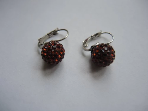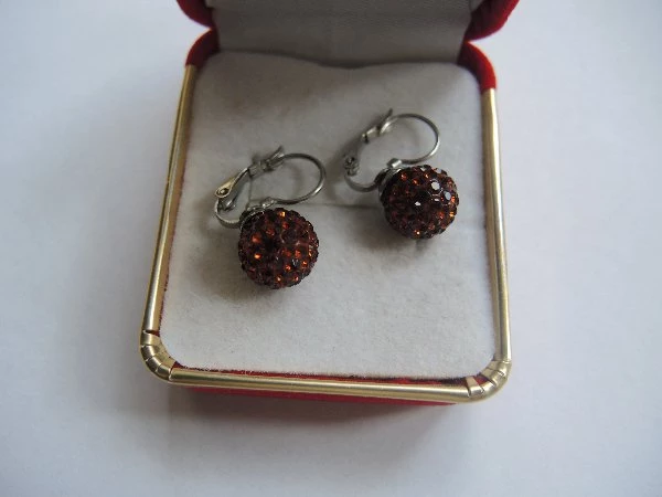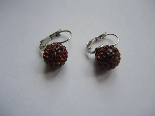 Luxusní náušnice kuličky osypané zirkony Hnědočervené Průměr: 10 mm Pohodlné zapínání z chirurgické oceli na klapku .