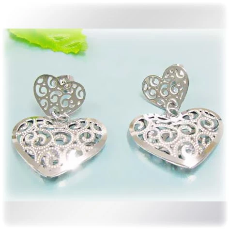 Nádherné náušnice ve tvaru srdíček,které jsou zdobené Velikost menších srdíček 14x10mm Velikost větších srdíček 25x19mm Celková délka náušnic 35mm Zapínání na puzetku