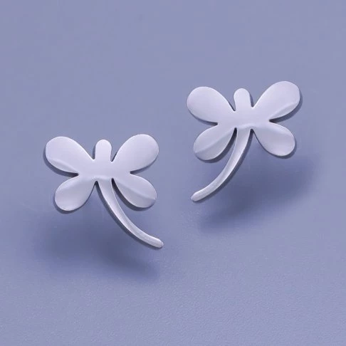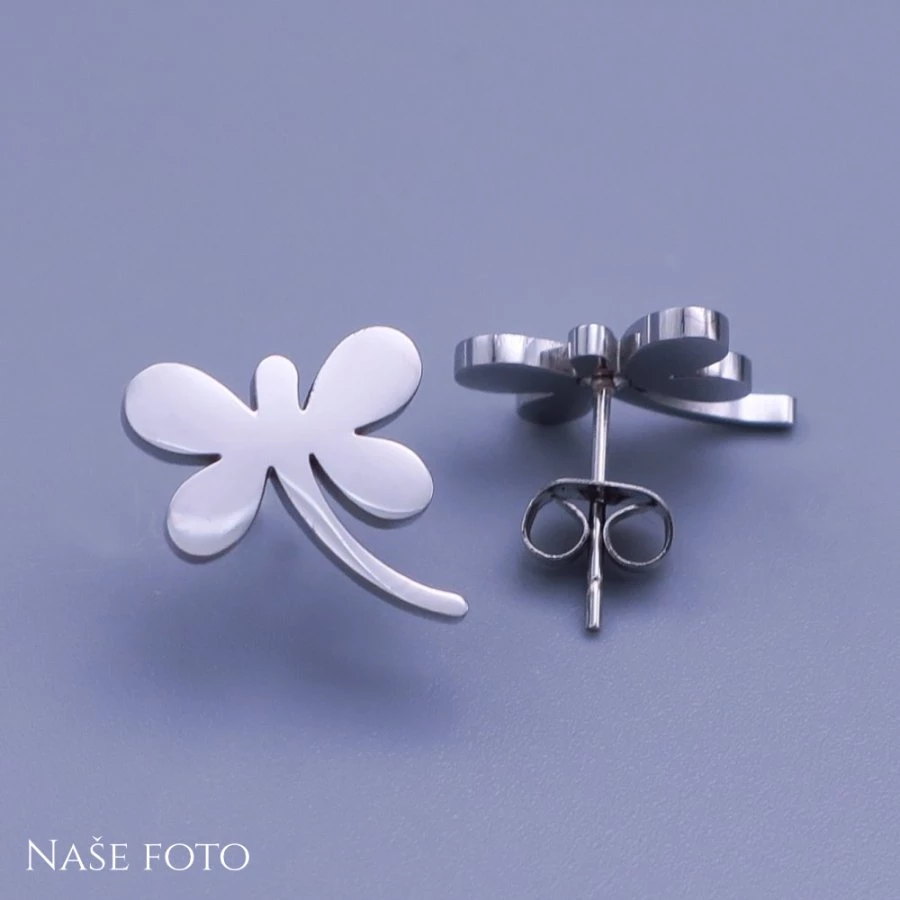 Jemné dámské náušnice z chirurgické oceli - vážky. Náušnice jsou na puzetové zapínání.
