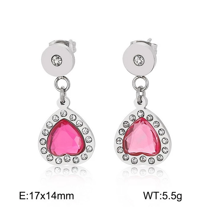 Náušnice z chirurgické oceli srdíčka s růžovým kamenem a krystal kamínky po obvodu. Velikost 1,7cm x 1,4cm. Šperk Chirurgická ocel.Cenově dostupný. Oblíbený pro svoje vlastnosti. Odolnost proti korozi. Barevná stálost.Vyjímečná tvrdost.Plnohodnotně nahradí drahé kovy.