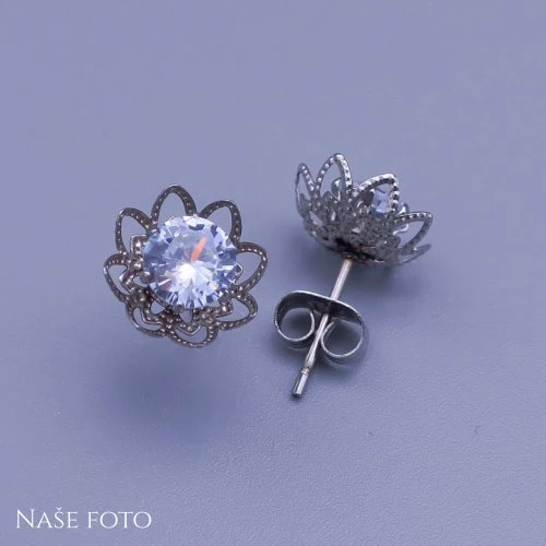 Krásné dámské peckové náušnice z chirurgické oceli. Náušnice mají tvar kytičky a ve středu jsou zdobeny čirým třpytivým zirkonem Swarovski. Jsou velice jemné a elegantní. Skvěle se hodí ke každé barvě oblečení. Kytkové náušnice jsou ideálním šperkem na jaro a léto.