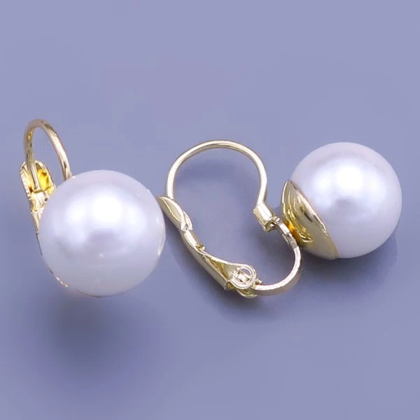 Náušnice z chirurgické oceli jsou povrchově upraveny zlacením 14kar. v odstínu českého zlata. Bílé perleťové kuličky 10mm, Pohodlné zapínání na klapku. 22249b