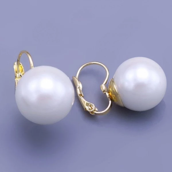 Náušnice z chirurgické oceli jsou povrchově upraveny zlacením 14kar. v odstínu českého zlata. Bílé perleťové kuličky 14mm. Pohodlné zapínání na klapku. 22249c