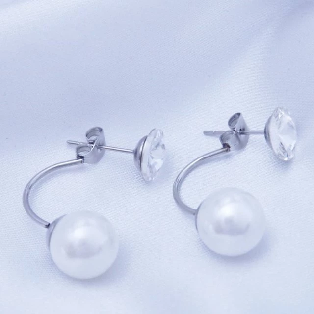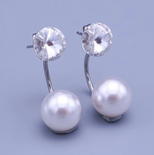 Moderní náušnice jsou složené z krystalů Swarovski rivoli v barvě crystal ( čirá ) a perle white velikosti 10mm Vrchní náušnice 8mm Spodní perlička v bílé perleťové barvě 10mm je uchycena na obloukovém úchytu a puzetově se uchytí na vrchí náušnici . Celkově působí náušnice velice efektně a zářivě :) Celková délka 25mm Chirurgická ocel je vhodná pro alergiky na běžné kovy . 558