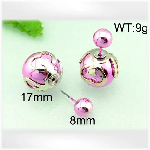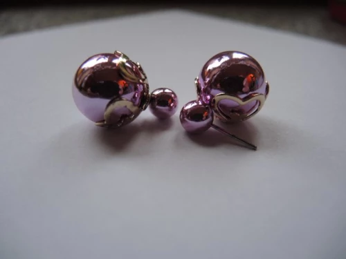 Krásné náušničky s komponenty z chirurgické oceli 316L, barvené PVD Zapínání: na šroubovací kuličku Barva: růžová Hmotnost: 9g, Průměr: malá perla 8*8mm, velká perla 17*17mm Dvouletá záruka 7NE44010
