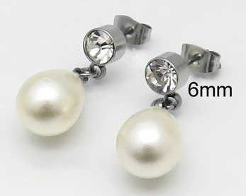 Náušnice z chirurgické oceli visací s bílou perličkou. Délka 2,5 cm, šířka perly 1 cm, velikost kamínku 6 mm.