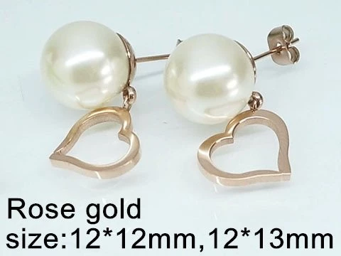 Náušnice z chirurgické oceli visací, v provedení růžové zlato. Náušnice s bílou perlou a přívěskem srdce. Rozměry perly 12x12mm Rozměry srdce 12x13mm Zapínání na puzetku
