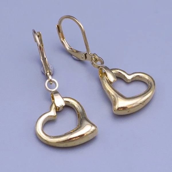 Náušnice z chirurgické oceli jsou povrchově upraveny zlacením 14kar. Zlaceno v ČR bez niklu. Velikost srdíčka 15mm. Srdíčka jsou zavěšeny na pohodlném zlaceném klapkovém zapínání z chirurgické oceli. Celková délka náušnic se zapínáním 35mm. Chirurgická ocel je vhodná pro alergiky na běžné kovy. 220