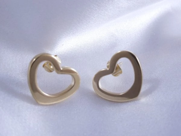 Jemné náušnice ve tvaru srdíček jsou povrchově upraveny zlacením . Velikost : 15mm Zapínání na puzetu . 5036