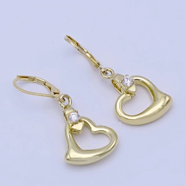 Náušnice z chirurgické oceli jsou povrchově upraveny zlacením 14kar. Zlaceno v ČR. Velikost srdíčka 15mm. Srdíčka jsou zavěšeny na pohodlném klapkovém zapínání zdobeném čirým zirkonem. Celková délka náušnic se zapínáním 35mm. Chirurgická ocel je vhodná pro alergiky na běžné kovy. 1188