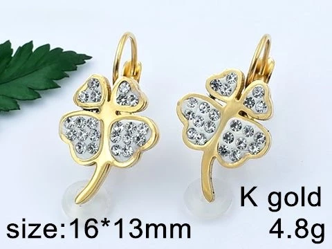 Náušnice z chirurgické oceli ve zlaceném provedení. Náušnice ve tvaru čtyřlístku s krystal kamínky.Krásně zpracovaný šperk ke každé příležitosti. Zapínání na klapku Rozměry Délka náušnic 27mm Šířka 14mm Hmotnost4.8g