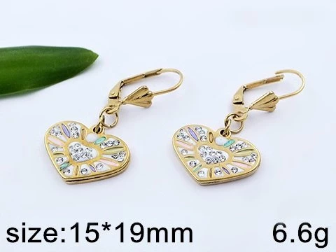 Náušnice visací ve zlatém provedení chirurgické oceli. Náušnice ve tvaru srdce s bílou výplní a crystal kamínky. Obrázek je pouze ilustrativní - bílá výplň! MATERIÁL Chirurgická ocel 316L BARVA Zlatá ZAPÍNÁNÍ NÁUŠNICE Klapka DRUH KAMENE Štras BARVA KAMENE Crystal