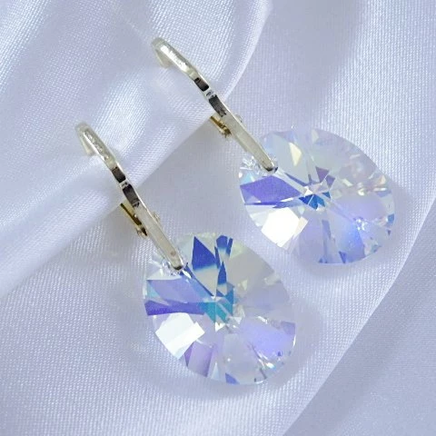Krásné výrazné náušnice Swarosvki oválky o velikosti 18x 14mm nabízíme v barvě Crystal AB ( měnící ) , Pohodlné zapínání na klapku, které je povrchově upraveno zlacením 14 kar. Celková délka náušnic se zapínáním : 35mm Chirurgická ocel je vhodná pro alergiky na běžné kovy . 028
